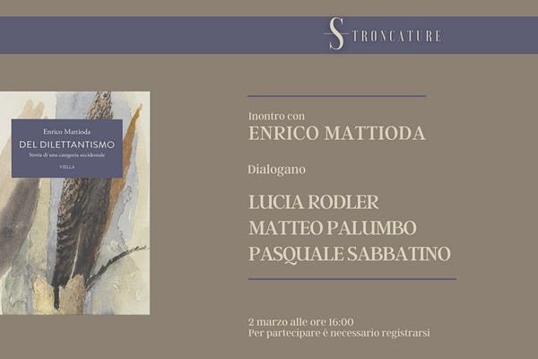 Il prossimo 2 marzo alle 16:00, Stroncature ospiterà la presentazione del libro “Del dilettantismo.
