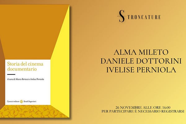 Il prossimo 26 novembre alle 16:00, Stroncature ospiterà la presentazione del libro “Storia del cinema documentario” di Ivelise Perniola e Marco…