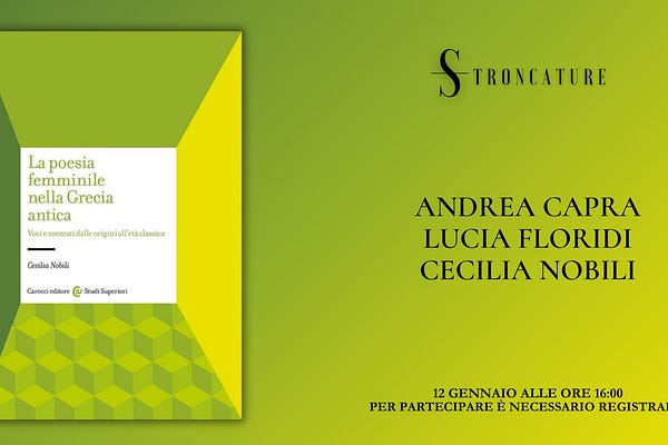 Il prossimo 12 gennaio alle 16:00, Stroncature ospiterà la presentazione del libro “La poesia femminile nella Grecia antica” di Cecili Nobili (Carocci…