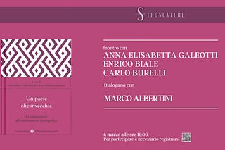 Il prossimo 6 marzo alle 16:00, Stroncature ospiterà la presentazione del libro “Un paese che invecchia” a cura di Enrico Biale, Carlo Burelli, Anna…