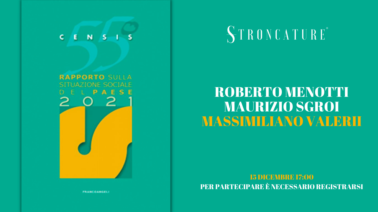 "La decrescita della ragione" - 55° Rapporto CensisRecensioni & Presentazionidic 08, 2021∙ A pagamentoCondividiIl prossimo 15 dicembre alle ore 17:00, Stroncature, nell’ambito della attività della rubrica Crossroads diretta da Maurizio Sgroi, ospita la presentazione del 55° Rapporto sulla situazione sociale d…Questo post è per abbonati a pagamento.IscrivitiGià abbonato a pagamento? AccediPrecedenteAvanti