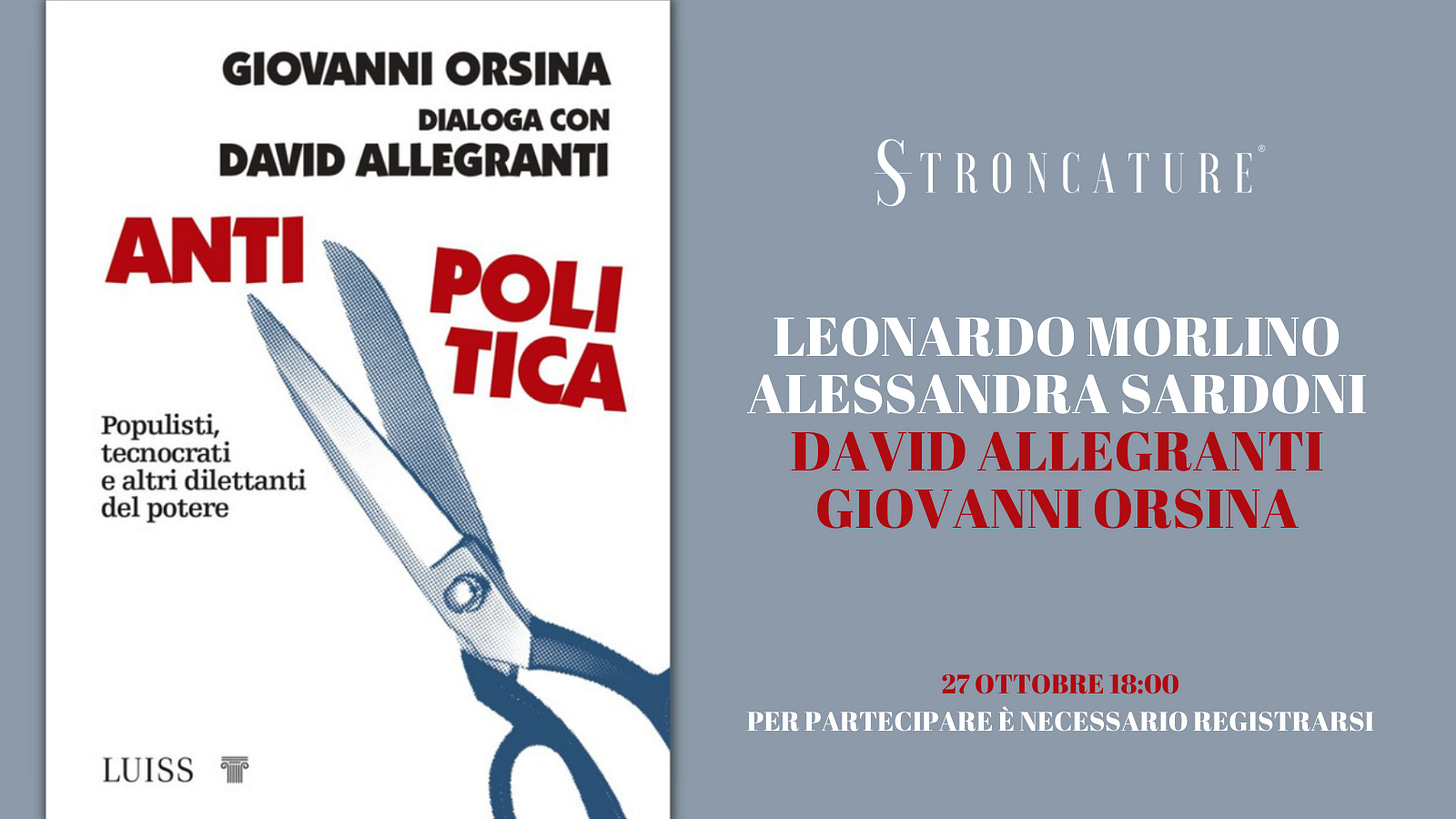 "Antipolitica" di Giovanni Orsina e Davi AllegrantiRecensioni & Presentazioniset 19, 2021∙ A pagamentoCondividiIl prossimo 27 ottobre alle ore 18:00, Stroncature ospita la presentazione di “Antipolitica. Populisti, tecnocrati e altri dilettanti del potere” di Giovanni Orsina e Davi Allegranti (Luiss Universit…Questo post è per abbonati a pagamento.IscrivitiGià abbonato a pagamento? AccediPrecedenteAvanti
