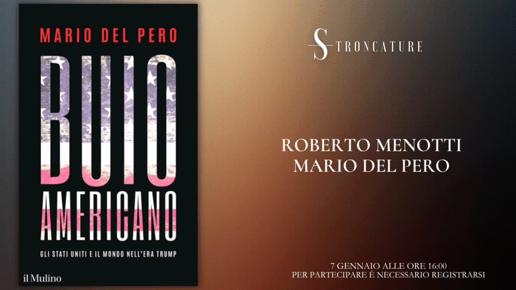 Il prossimo 7 gennaio alle 16:00, Stroncature ospiterà la presentazione del libro “Buio americano. Gli Stati Uniti e il mondo nell’era Trump” di Mario Del Pero (il Mulino, 2025).