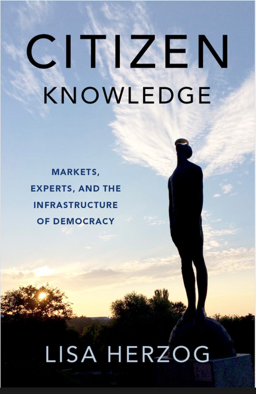 “Citizen Knowledge: Markets, Experts, and the Infrastructure of Democracy” Lisa Herzog (Oxford University Press, 2024)