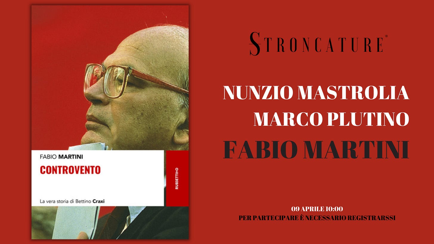 Il prossimo 9 aprile alle ore 10:00, Stroncature ospita la presentazione dell’ultimo libro di Fabio Martini “Controvento. La vera storia di Bettino Craxi” (Rubbettino, 2020). Con l’autore dialogano N…