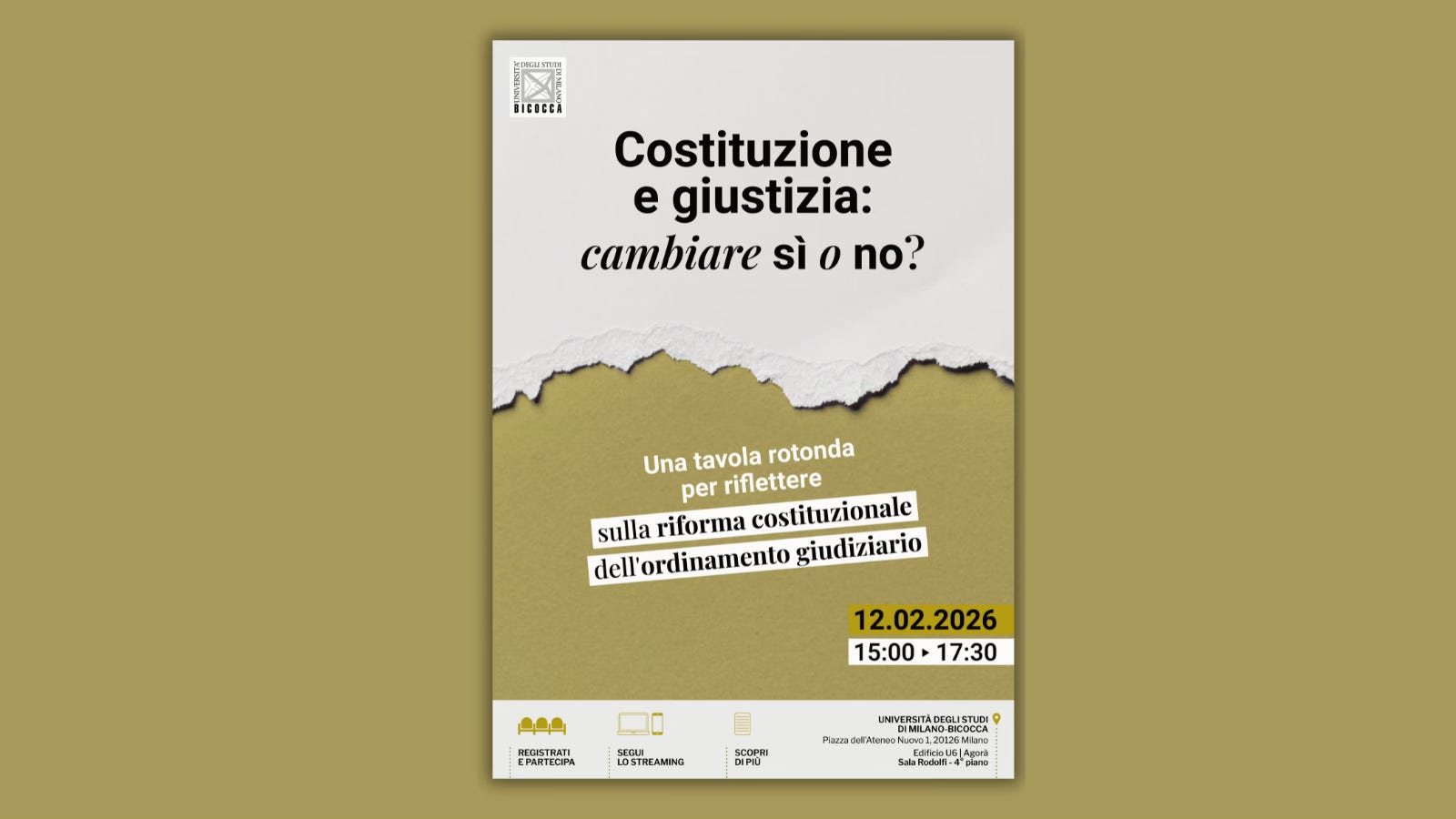 Il prossimo 12 febbraio 2026, dalle 15.00 alle 17.30, Stroncature ospiterà una tavola rotonda organizzata dall’Università di Milano-Bicocca dal titolo “Costituzione e giustizia: cambiare sì o no?”.