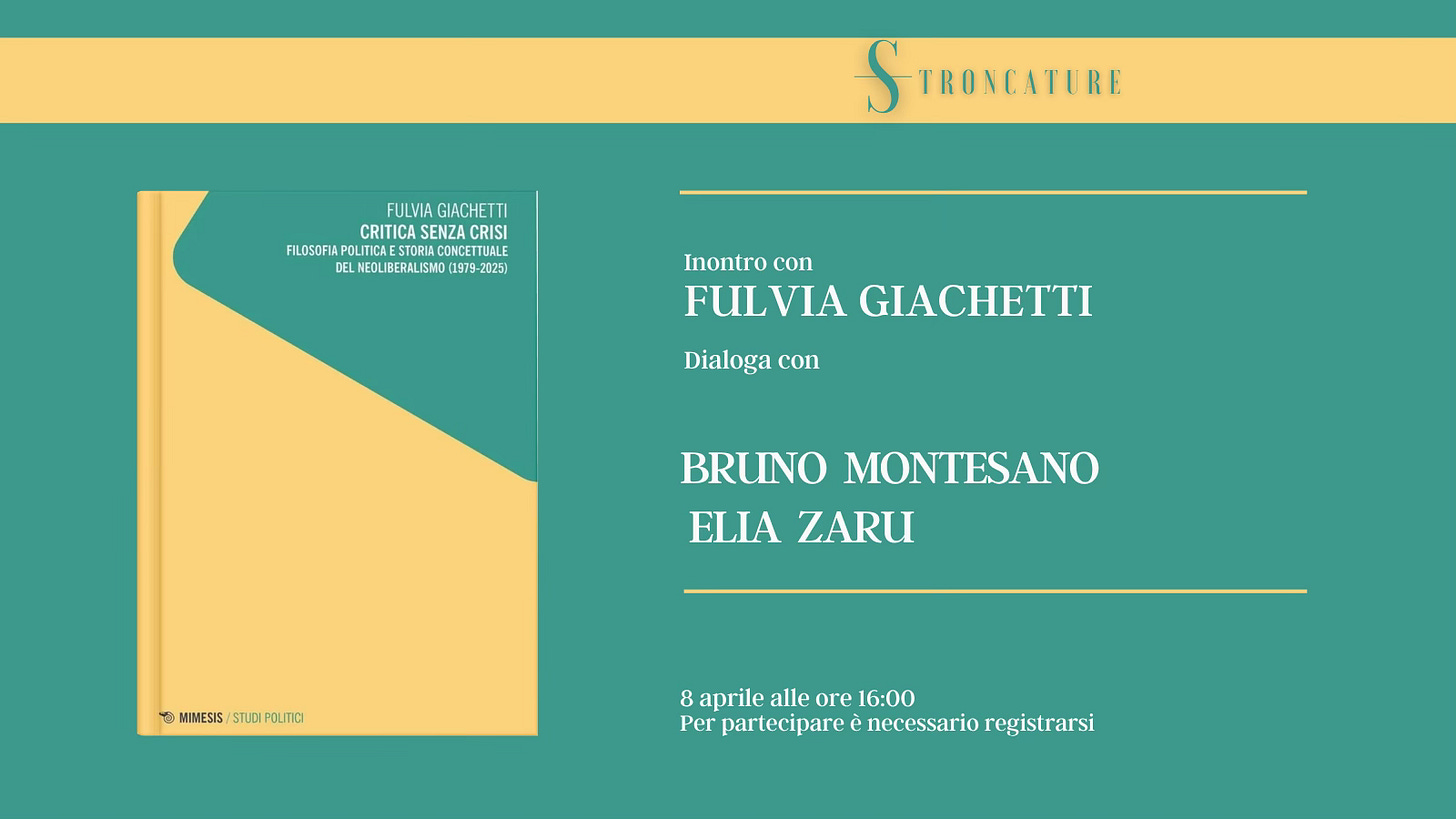 Il prossimo 8 aprile alle 16:00, Stroncature ospiterà la presentazione del libro “Critica senza crisi” di Fulvia Giachetti (Mimesis, 2025).
