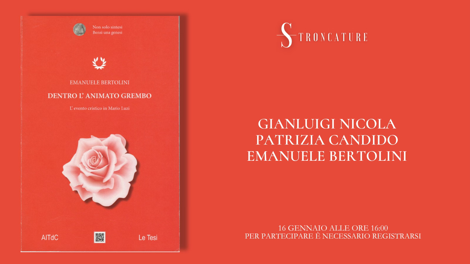 Il prossimo 16 gennaio alle 16:00, Stroncature ospiterà la presentazione del libro “Dentro l’animato grembo – L’evento cristico in Mario Luzi” di Emanuele Bertolini.