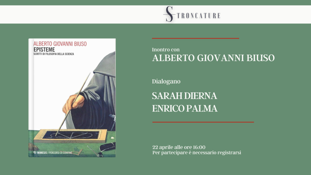 Il prossimo 22 aprile alle 16:00, Stroncature ospiterà la presentazione del libro “Episteme. Scritti di filosofia della scienza” di Alberto G. Biuso (Mimesis, 2026).