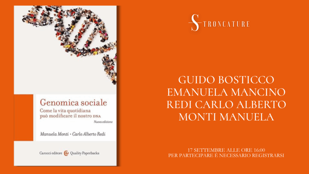 Il prossimo 17 settembre alle 16:00, Stroncature ospiterà la presentazione del libro "Genomica sociale. Come la vita quotidiana può modificare il nostro DNA" di Carlo Alberto Redi e Manuela Monti (Carocci editore, 2025).