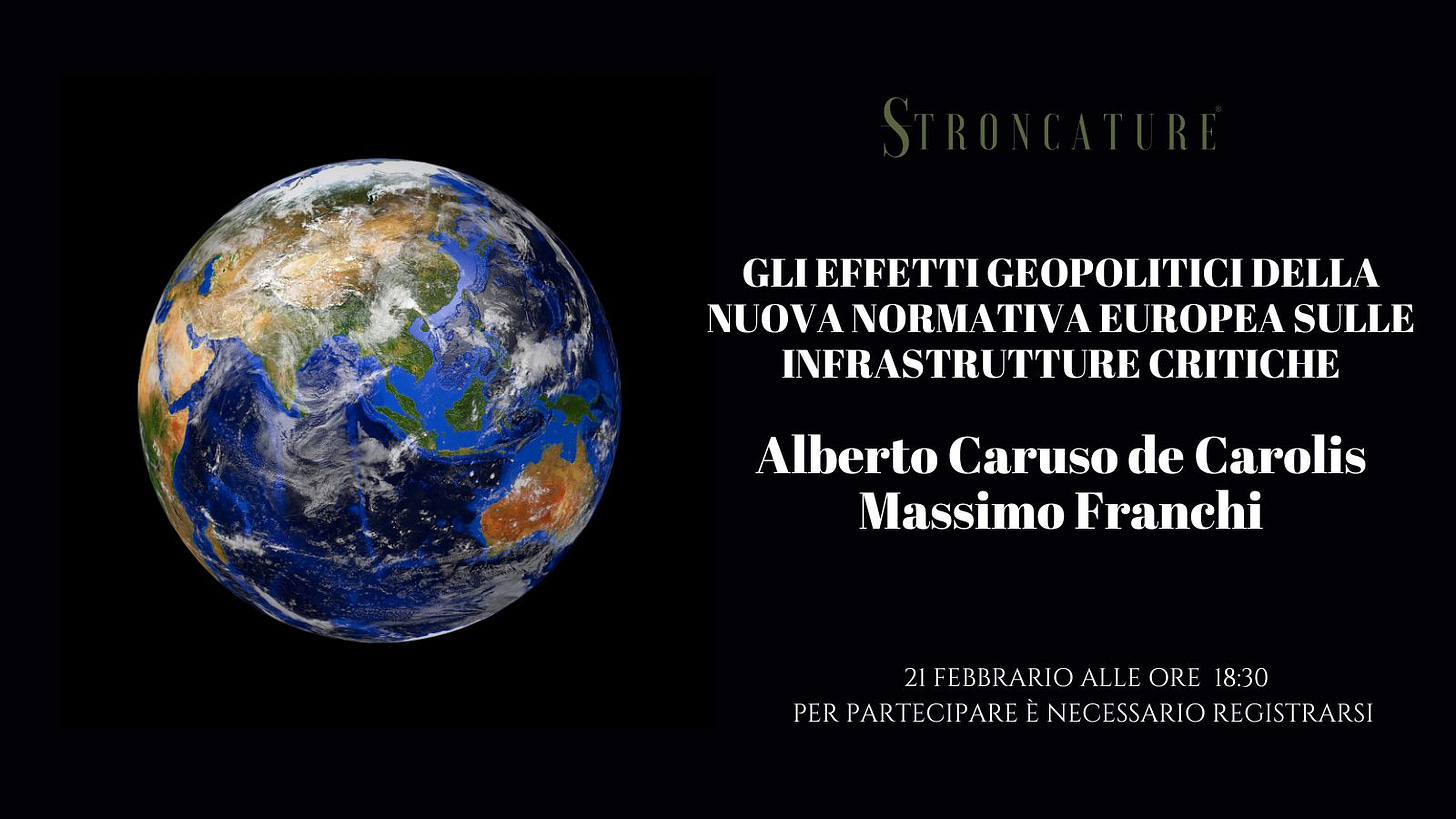 "Gli effetti geopolitici della nuova normativa europea sulle infrastrutture critiche" con Alberto Caruso de CarolisSeminari & Convegnifeb 10, 2023∙ A pagamento1CondividiIl prossimo 21 febbraio alle ore 18.30, Stroncature ospita la seconda puntata delle terza edizione della Winter School di Geopolitica diretta da Massimo Franchi. Ospite dell’incontro è Alberto Caruso…Questo post è per abbonati a pagamento.IscrivitiGià abbonato a pagamento? AccediPrecedenteAvanti