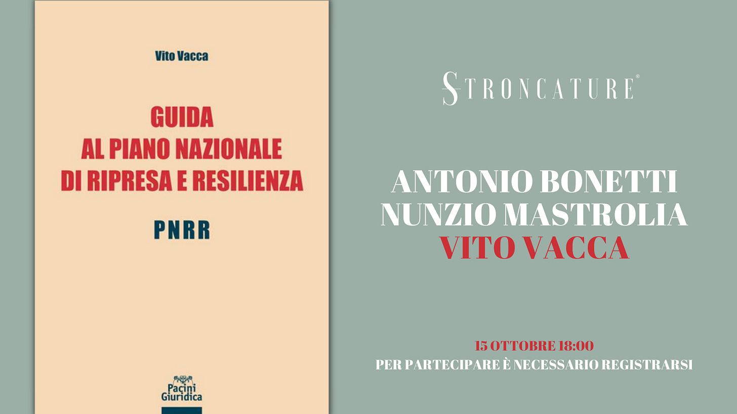 "Guida al Piano Nazionale di Ripresa e Resilienza" di Vito VaccaRecensioni & Presentazioniott 12, 2021∙ A pagamentoCondividiIl prossimo 15 ottobre alle ore 18:00, Stroncature ospita la presentazione di “Guida al Piano Nazionale di Ripresa e Resilienza. PNRR” di Vito Vacca (Pacini Editore, 2021). Con l’autore dialoga Anton…Questo post è per abbonati a pagamento.IscrivitiGià abbonato a pagamento? AccediPrecedenteAvanti