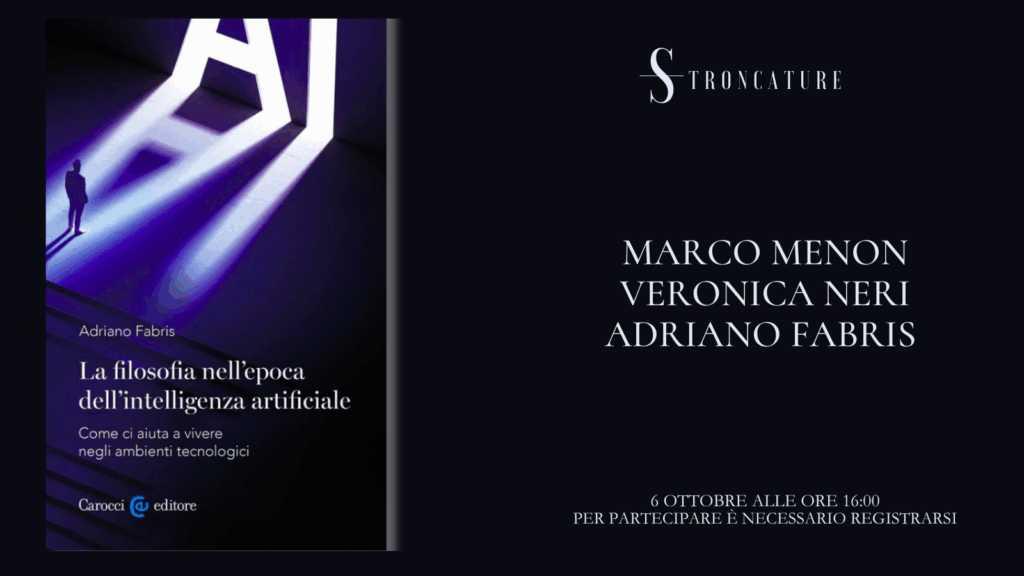 Il prossimo 6 ottobre alle 16:00, Stroncature ospiterà la presentazione del libro "La filosofia nell'epoca dell'IA" di Adriano Fabris (Carocci editore, 2025).