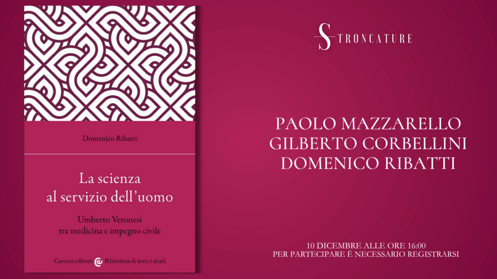 Il prossimo 10 dicembre alle 16:00, Stroncature ospiterà la presentazione del libro “La scienza al servizio dell’uomo. Umberto Veronesi tra medicina e impegno civile” di Domenico Ribatti (Carocci editore, 2025).