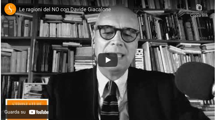 Le ragioni del NO con Davide GiacaloneDibattiti & Seminariago 28, 2020∙ A pagamentoCondividiNon una delle ragioni addotte dai sostenitori del sì ha senso. Non solo, se la riforma che prevede una riduzione del numero dei parlamentari dovesse passare i danni sarebbero enormi. Con Davide Giaca…Questo post è per abbonati a pagamento.IscrivitiGià abbonato a pagamento? AccediPrecedenteAvanti