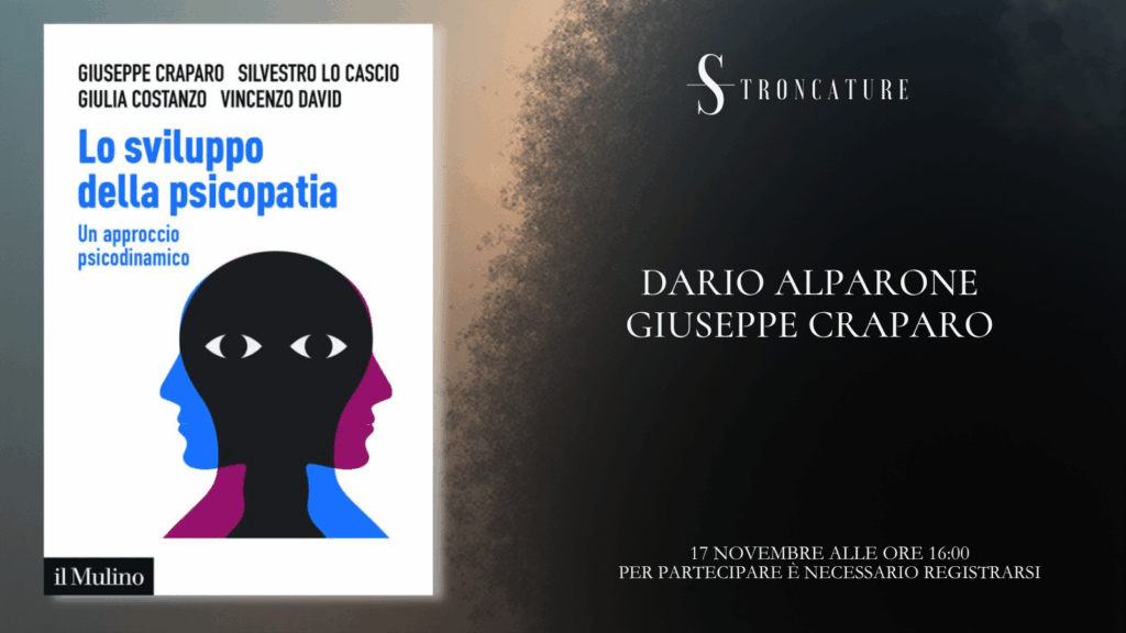 Il prossimo 17 novembre alle 16:00, Stroncature ospiterà la presentazione del libro “Lo sviluppo della psicopatia” di Giuseppe Craparo, Silvestro Lo Cascio, Giulia Costanzo, Vincenzo David (il Mulino, 2025).