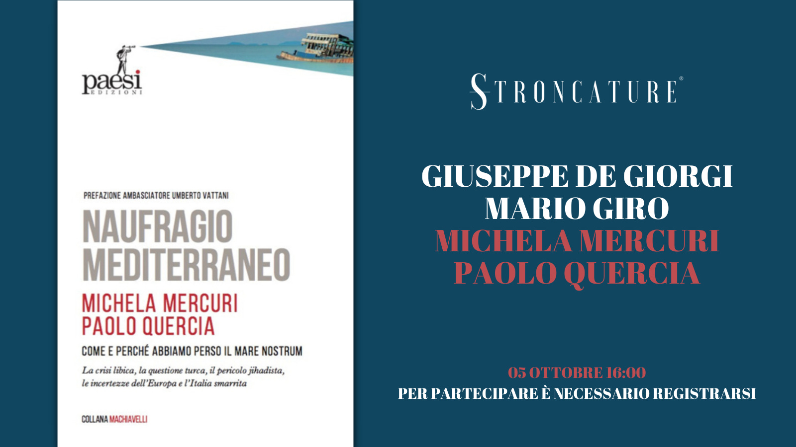 "Naufragio Mediterraneo" di Mercuri e QuerciaRecensioni & Presentazioniset 23, 2021∙ A pagamentoCondividiIl prossimo 5 ottobre alle ore 16:00, Stroncature ospita la presentazione di “Naufragio Mediterraneo. Come e perché abbiamo perso il Mare Nostrum” di Michela Mercuri e Paolo Quercia (Paesi Edizioni, …Questo post è per abbonati a pagamento.IscrivitiGià abbonato a pagamento? AccediPrecedenteAvanti