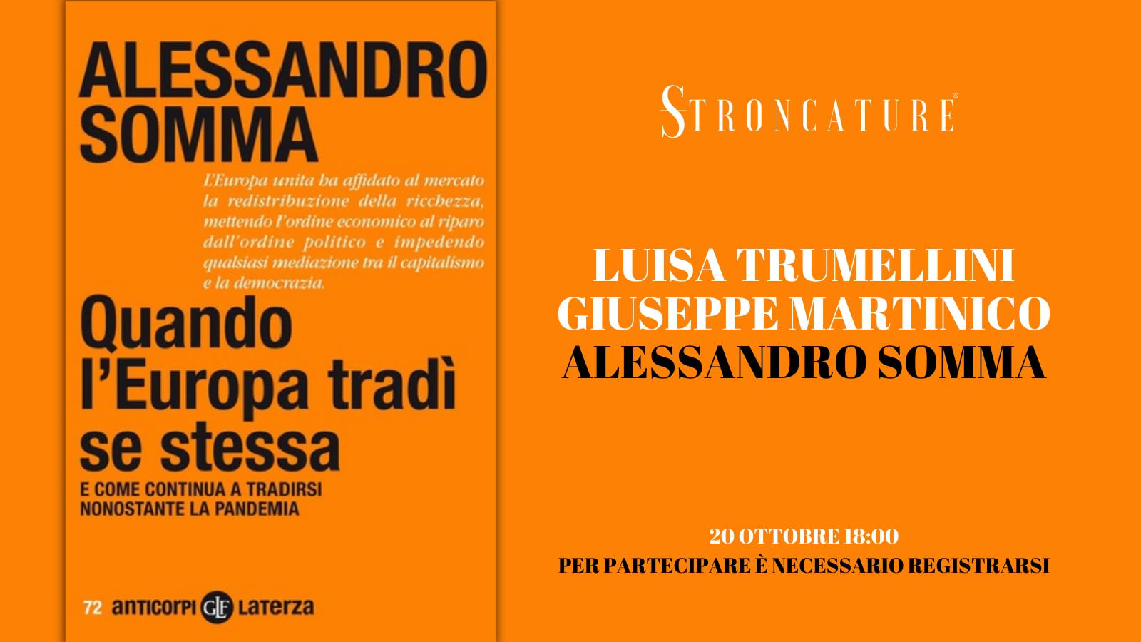 "Quando l'Europa tradì se stessa" di Alessandro SommaRecensioni & Presentazionilug 30, 2021∙ A pagamentoCondividiIl prossimo 20 ottobre alle ore 18:00, Stroncature ospita la presentazione di “Quando l'Europa tradì se stessa. E come continua a tradirsi nonostante la pandemia” di Alessandro Somma (Laterza, 2021).…Questo post è per abbonati a pagamento.IscrivitiGià abbonato a pagamento? AccediPrecedenteAvanti
