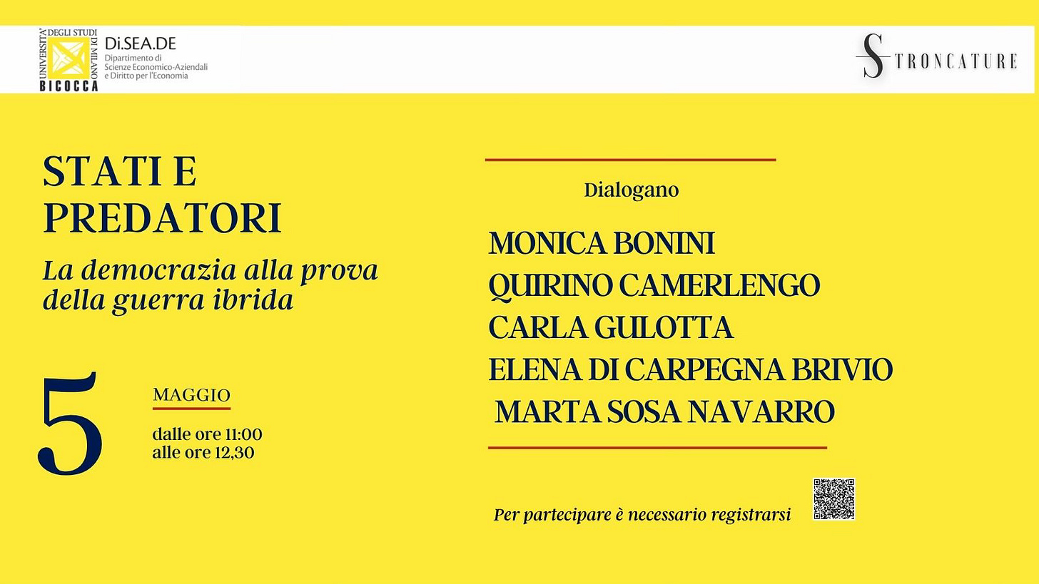 “Stati e predatori. La democrazia alla prova della guerra ibrida” Università degli Studi Milano -Bicocca