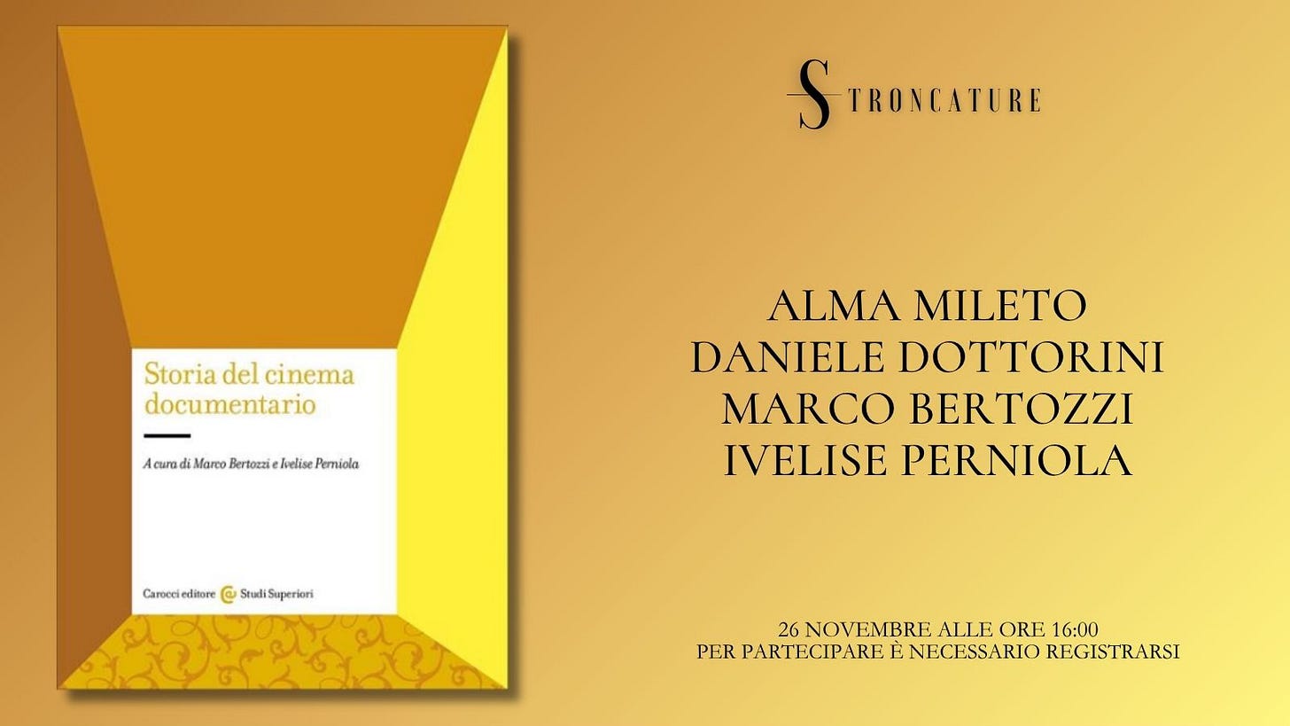 Il prossimo 26 novembre alle 16:00, Stroncature ospiterà la presentazione del libro “Storia del cinema documentario” di Ivelise Perniola e Marco Bertozzi (Carocci editore, 2025).