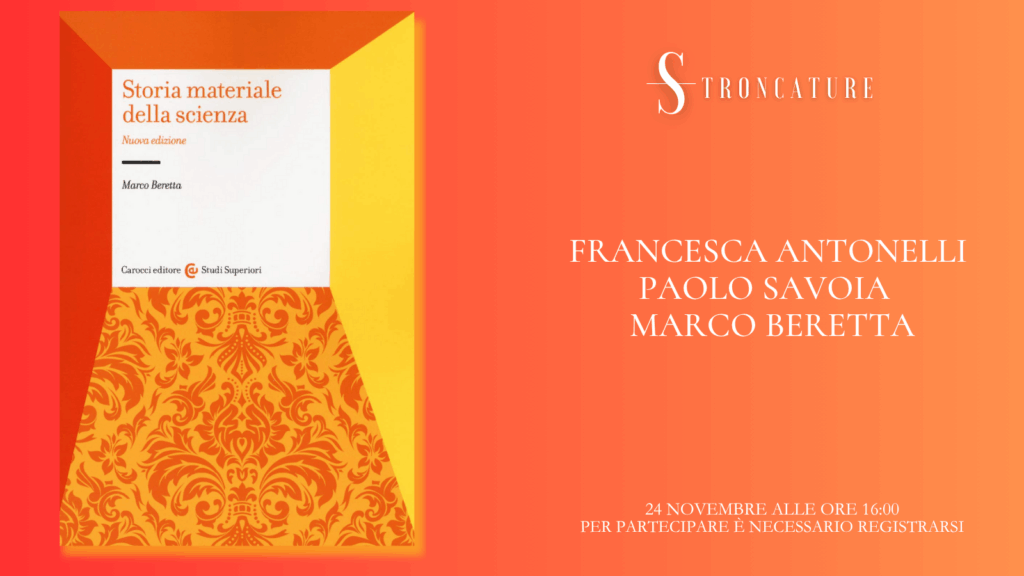 Il prossimo 24 novembre alle 16:00, Stroncature ospiterà la presentazione del libro “Storia materiale della scienza” di Marco Beretta (Carocci editore, 2025).